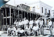 Στη φωτογραφία ο Απόστολος Τσακίρης, με το συνεργείο του. Ο Τσακίρης, ήταν ο πρωτοπόρος εργολάβος οικοδομών της περιοχής και την ίδια εποχή έχτισε τη βίλα Λαμπράκη. Να αναφέρουμε ακόμη ότι μεταξύ άλλων, έχτισε τα ξενοδοχεία Λάτση, ΧΡΥΣΗ ΑΥΓΗ, Παπασωτηρίου, Τσαρμπού, Τουρλακάκη.