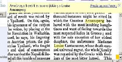 Το 1838 εκδόθηκε βιβλίο το οποίο αναφερόταν στον πρόωρο χαμό της κοντέσας Λουίζας Armansperg της οποίας θάνατος προκάλεσε καθολικό πένθος.